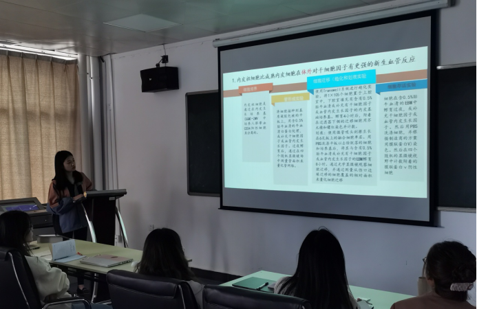 盛芸芸同学作题为《Direct and differential effects of stem cell factor on the neovascularization activity of endothelial progenitor cells》的文献汇报。