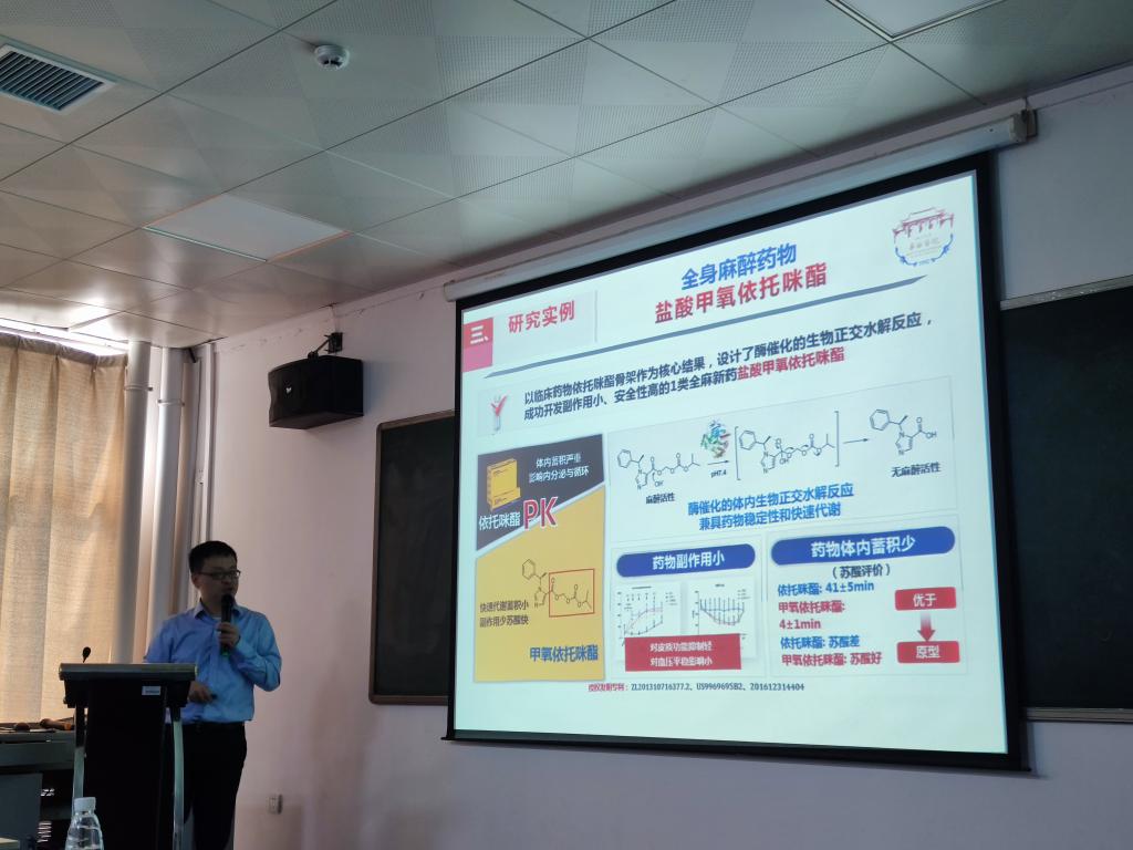 柯博文教授详细阐释了临床导向的新药创制模式、以离子通道和GPCR为靶点的高选择性镇痛新药开发、用于新药发现的生物发光与荧光探针的研发、用于麻醉药物手术监测的生物光学实时成像系统的构建、全新麻醉创新药物(磷丙泊酚钠、盐酸甲氧依托咪脂)的设计策略、基础研究及临床转化,报告内容丰富而翔实。报告结束后,参会师生就新药创制等问题与柯博文教授进行了深入交流,在场师生获益匪浅。