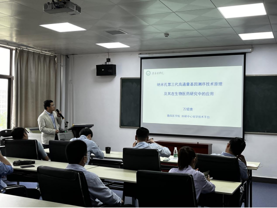 万绍贵博士以《纳米孔第三代高通量基因测序技术原理及其在生物医药研究中的应用》为题,介绍了基因测序的发展历程及其相关应用,并结合自身研究搭建了纳米孔基因测序平台。基于纳米孔测序技术,万博士开展了染色体外环状DNA分子测序、Cas9靶向富集的融合基因与甲基化测序、全长转录组测序以及微生物组测序等一系列研究工作,为生物医药发展提供了技术支持。
